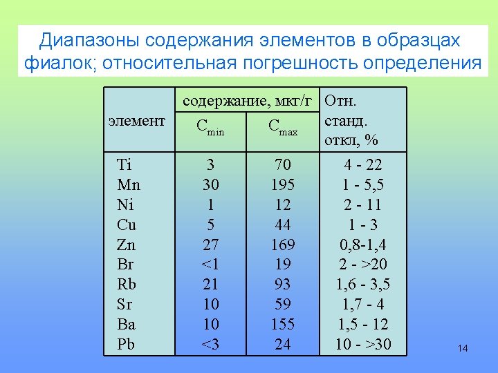 MPH 2 Na Mg Al Si P S Cl K Ca Ti Mn Fe Ni Cu Zn Br Rb Sr Ba Pb СБМТ-02 CАТТ. , % C РФА, % CАТТ, % (0. 0350) 0. 292 0. 018 0. 0670 00111 (0. 25) 0. 241 0. 014 0. 284 0. 020 1. 91 0. 12 1. 08 0. 07 (0. 0034) 0. 0191 0. 0012 (0. 0460) 0. 00012 0. 00002 0. 00078 0. 00005 0. 00335 0. 00021 0. 00077 0. 00006 0. 00107 0. 00007 0. 00376 0. 00027 0. 00325 0. 00022 0. 00002 0. 034 0. 005 0. 278 0. 043 0. 0563 0. 0166 0. 400 0. 024 0. 304 0. 019 0. 219 0. 007 0. 288 0. 007 1. 94 0. 04 1. 13 0. 10 0. 0046 0. 0011 0. 0186 0. 0016 0. 0506 0. 0035 0. 00016 0. 00003 0. 00077 0. 00004 0. 00347 0. 00016 0. 00078 0. 00025 0. 00117 0. 00005 0. 00404 0. 00015 0. 0028 0. 0004 < DL 0. 108 0. 004 0. 33 0. 015 0. 0002 0. 16 0. 01 0. 344 0. 002 0. 29 0. 04 0. 84 0. 12 2. 39 0. 04 0. 88 0. 02 0. 0010 0. 0002 0. 0108 0. 0002 0. 0200 0. 0004 0. 00007 0. 00001 0. 0002 0. 0001 0. 0034 0. 0001 0. 0008 0. 0001 0. 00065 0. 00005 0. 0025 0. 0002 0. 0048 0. 0002 0. 00013 0. 00002 C РФА, % 0. 0099 0. 006 0. 312 0. 019 0. 012 0. 002 0. 183 0. 012 0. 347 0. 027 0. 33 0. 01 0. 92 0. 13 2. 36 0. 08 0. 84 0. 05 0. 0009 0. 0003 0. 0104 0. 0010 0. 0215 0. 0045 < DL 0. 0003 0. 0001 0. 0033 0. 0002 0. 0008 0. 0002 0. 0007 0. 0001 0. 0020 0. 0002 0. 0045 0. 0012 12 < DL