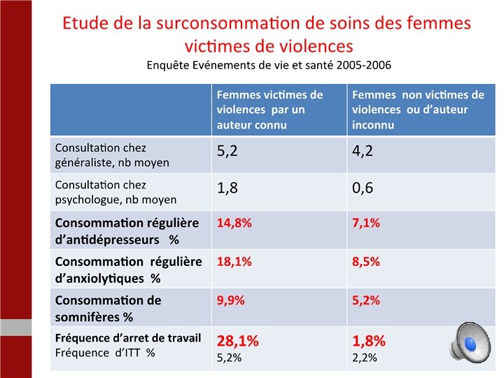 Seuls 8% des tentatives de viols ou de viols subis par les femmes sont signalés aux médecins !! Alors que le retentissement sur la santé des femmes est majeur. D’après l’enquête : seuls 4% des tentatives de viols ou de viols subis par les femmes sont signalés à la police ou à la gendarmerie !! gilles lazimi 12