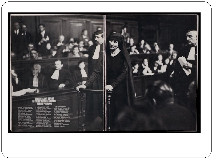 LE PROCES Le procès s’ouvre dans un contexte dramatique (l’assassinat à Marseille du roi Alexandre de Yougoslavie). Mais la foule se presse, dense, près du palais de justice. Violette pleure, se cache le visage, et s’évanouit de nombreuses fois. Le 13 octobre : 2ème journée. Les jurés se plaignent de ce que l’accusée cache son visage.