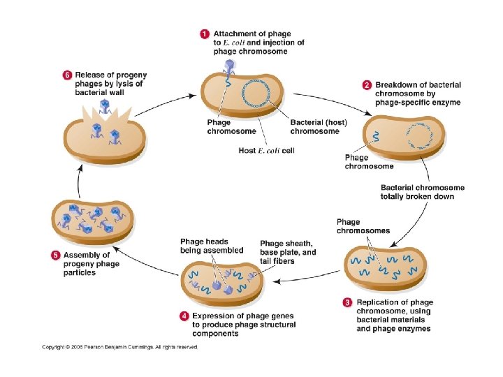 Penetration • Penetration follows attachment; viruses penetrate the host cell by endocytosis or by fusion with the cell or through injection of DNA. • Bacterial Chromosome degraded by viral enzymes. Replication of virus • Replication of virus particles is the stage where a cell uses viral RNA in its protein synthesis systems to produce viral proteins. • The RNA or DNA synthesis abilities of the cell produce the virus's DNA or RNA.