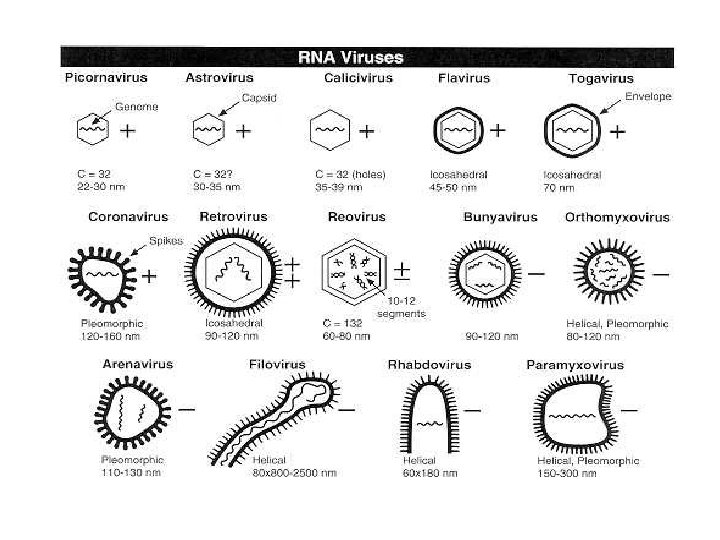 • Class I viruses contain a single molecule of double stranded DNA and are exemplified by adenovirus, simian virus 40 (SV 40), herpes viruses, and human papilloma viruses. • Class II viruses are also called parvo viruses and are made of single stranded DNA that is copied in to double stranded DNA before transcription in the host cell. • Class III viruses are double stranded RNA viruses - Rotavirus. • Class IV viruses, typified by poliovirus, have single plus strand genomic RNA that serves as the m. RNA. • Class V viruses contain a single negative strand RNA which serves as the template for the production of m. RNA by specific virus enzymes. • Class VI viruses which contains an enzyme reverse transcriptase- Hepatitis Virus.
