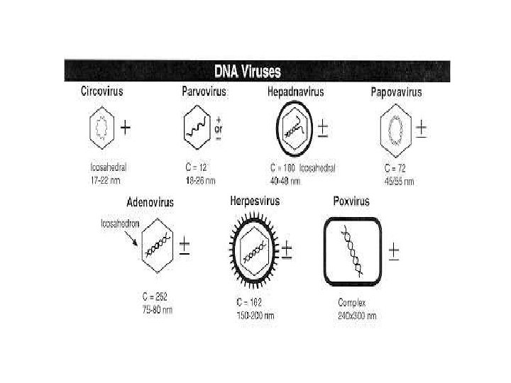 • DNA viruses belong to either Group I or Group II of the Baltimore classification system for viruses. • Single-stranded DNA is usually expanded to doublestranded in infected cells. • Examples include Poxviruses, Hepadnaviruses, Hepatitis b. Herpesviruses,