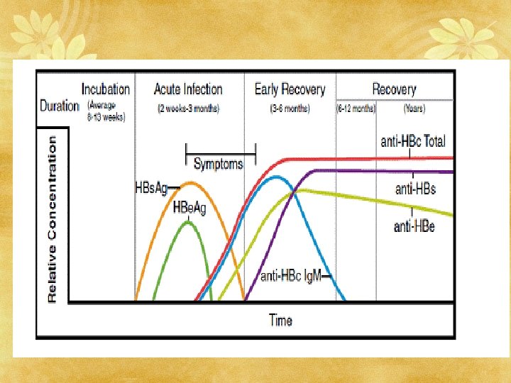 Serology HBs. Ag Present in acute of chronic infection Detectable 1 to 2 weeks after infection HBe. Ag Appears shortly after HBs. Ag Indicates viral Replication and Infectivity HBs. AB(Anti-HBS) Present after vaccination or clearance of HBs. Ag(Usually 1 to 3 months) Indicates immunity to HBV Hb core Antibody (Ig. M anti-Hbc or Ig. G anti-HBc) Only Serological marker of HBV during "Window Period"