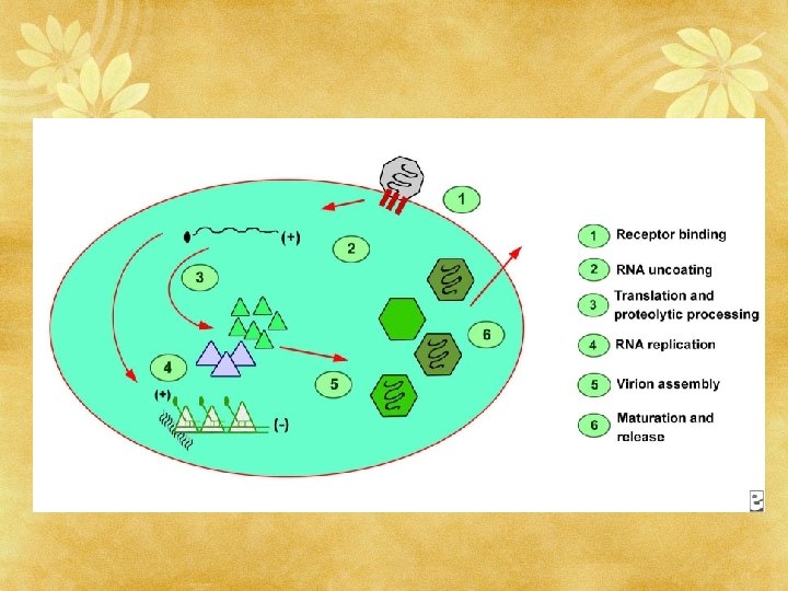 Pathophysiology Targets of the Hep viruses are hepatocytes: Hepatocyte uptake involves a receptor on the plasma membrane of the cell After entry into the cell, viral RNA is uncoated, and host ribosomes bind to form polysomes. Viral proteins are synthesized, and the viral genome is copied by a viral RNA polymerase Minimal cellular morphologic changes result from hepatocyte infection Lymphocytic infiltrate; varying degree of necrosis.