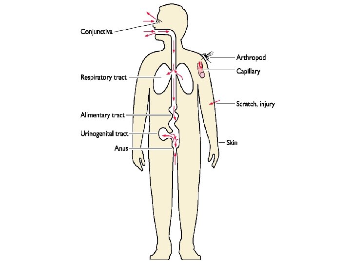Skin • Outer layer of dead, keratinized cells cannot support viral infection; entry usually occurs by breaks or punctures • Skin abrasions; insect or animal bites; needle punctures • Epidermis is devoid of blood or lymphatics; local replication • Dermis and sub-dermal tissues are highly vascularized; infection may spread