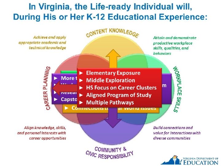 Two Priority Reforms Underway ü High School Redesign: Profile of a Virginia Graduate ü Accreditation Matrix/ESSA State Plan