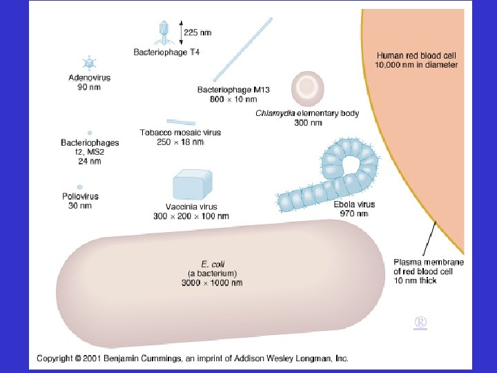 General Concepts Size – 20 – 300 nannometers (0. 02 -. 3 um) Contain: “Core” of Nucleic Acid (either DNA - 1 or 2 stranded) (or RNA – 1 or 2 stranded) Protein Coat surrounds Core Must use Host Cell Metabolic Machinery to Replicate and Produce More Viral Particles ARE OBLIGATE INTRACELLUAR PARASITES