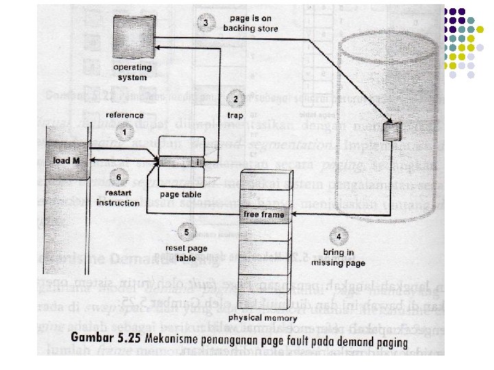 Mekanisme demand paging l l Jika berstatus invalid, maka trap page fault akan dibangkitkan agar ditangani lebih lanjut oleh rutin SO yaitu: page fault handler. Rutin page fault handler akan menangani operasi swap-in terhadap page yang diperlukan.