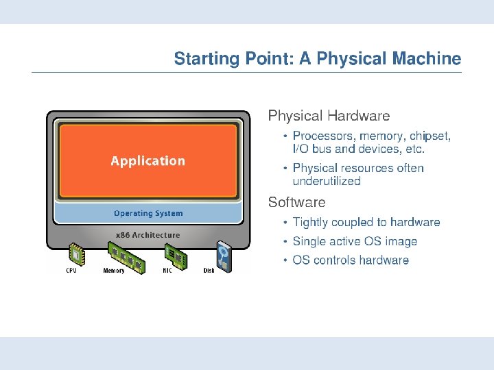 Karakteristik • Partitioning Run multiple operating systems on one physical machine Divide system resources between virtual machines • Isolation Fault and security isolation at the hardware level Advanced resource controls preserve performance