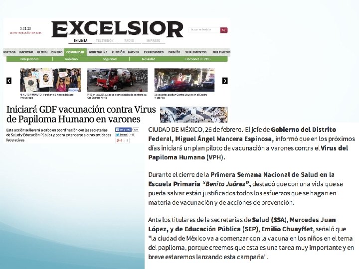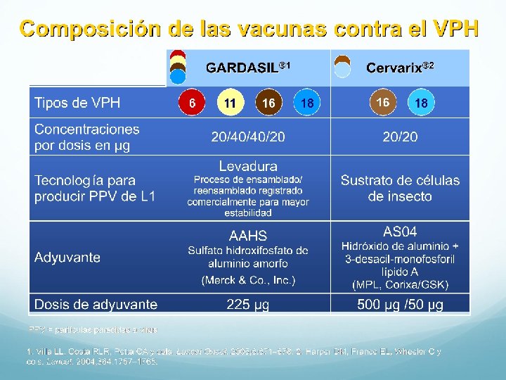 Desarrollo de vacuna contra VPH Más de 25 años. . . 2006 Registro 2002 Estudios fase III - tetravalente 2002 Estudios fase II – monovalente y tetravalente 2001 Estudios fase I - monovalente 1997 Estudios Pre-clínicos: VLP induce respuesta de Ig neutralizante 1995 Agencia Internacional de Investigación en Cáncer declara a VPH tipos 16 y 18 como carcinógenos VPH involucrado en transformación celular maligna 1991 Partículas similares a virus (VLP) ensambladas en levadura y células de insecto 1990 s Primeros intentos DNA desnudo - vaccinia virus - proteínas de fusión Autoensamblaje de proteinas de cápside L 1 y L 2 1980 s Sospecha Correlación VPH – CACU Annu Rev Med 2004; 55: 319 -31 N Engl J Med 2002 ; 347(21): 1703 -1705