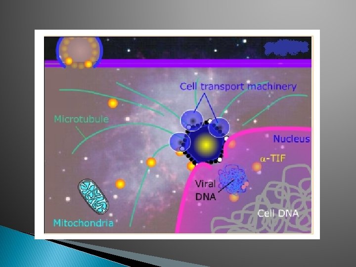 Proteínas necesarias para la producción de un virus maduro • Proteínas Alfa – Proteínas inmediatas-tempranas – Involucradas en la regulación transcripcional no se encuentran en el virión maduro. • Proteínas Beta – Proteínas tempranas implicadas en la replicación de ADN • Proteínas Gamma – Proteínas tardías – Componentes estructurales – La síntesis de proteínas Gamma se inicia después del inicio de la síntesis de ADN