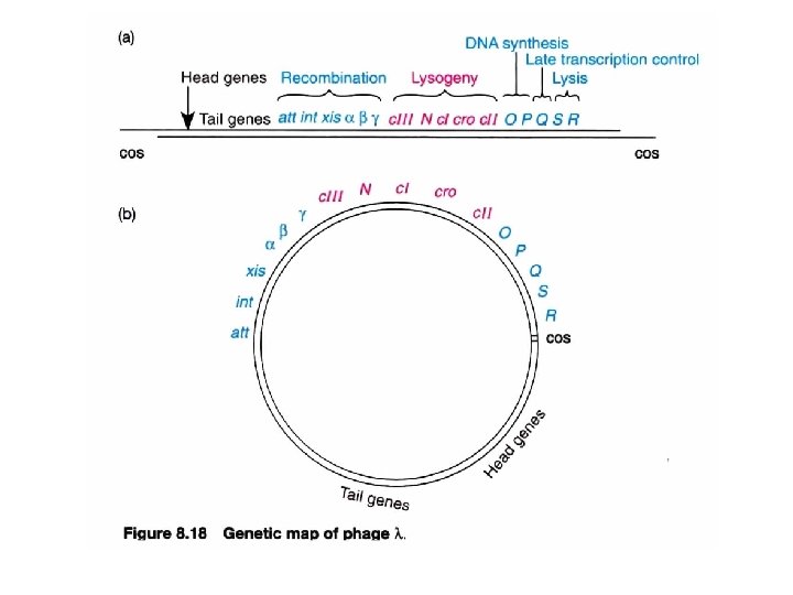 Lambda (λ) phage: two lifestyles (anti-termination control ; positive control) host RNA polymerase p. N as an anti-terminator p. Q as an anti-terminator (Repressor control; Negative control) Morphology 1. Double-stranded DNA genome, adopts both a linear and a circular form. 2. The protein coat, which protects the genome, is composed of a head and a tail. 15 different proteins, all encoded by the viral genome, form the protein coat.