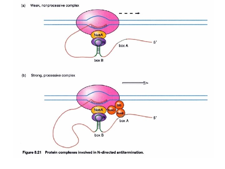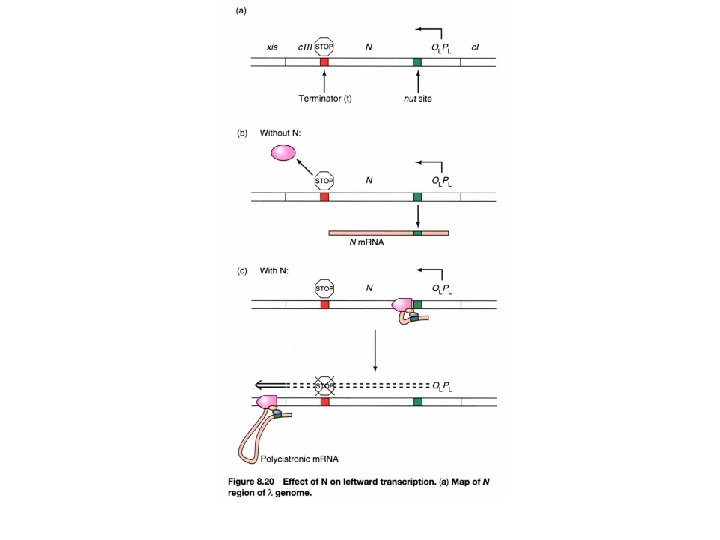 Two types of regulatory event in lytic cascade (switch from early stage to next stage related to gene expression) 1. by new σ factor is made or RNA polymerase 2. by making antitermination factor (using the same promoter) Previous gene expression continues at next stage