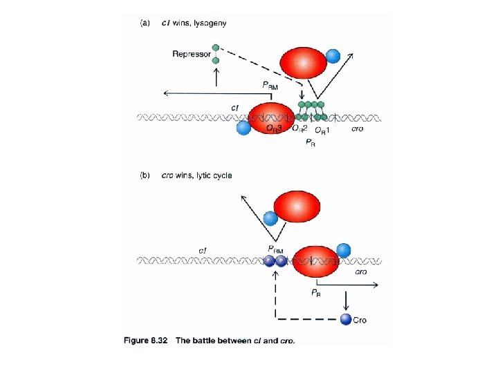 A tug of war between c. I and cro The occupancy of repressor (c. I) and cro at operators c. II is the judge
