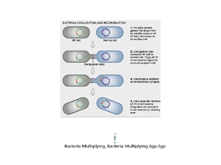 2. Conjugation: • DNA is exchanged between bac thru a pilus.
