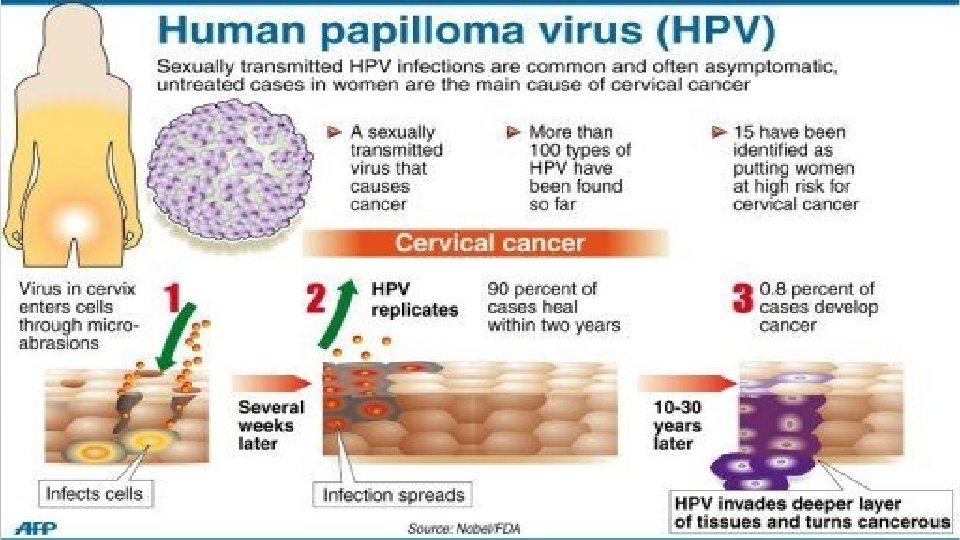 HPV and Cervical Cancer • HPVs also have a role in causing some cancers of the penis, anus, vagina, and vulva. • They are linked to some cancers of the mouth and throat, too. • Although HPVs have been linked to these cancers, most people infected with HPV never develop these cancers. • Smoking, which is also linked with these cancers, may work with HPV to increase cancer risk. Other genital infections may also increase the risk that HPV will cause cancer. • HPV