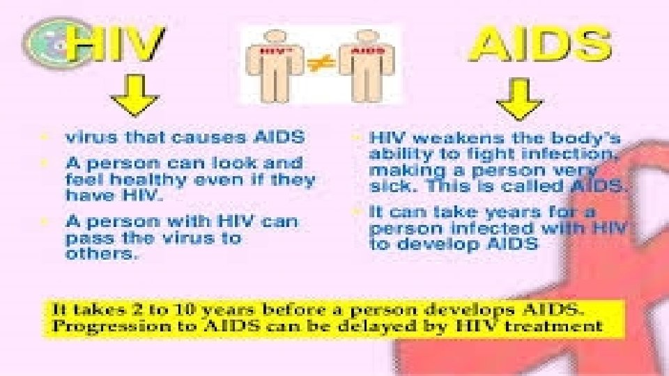 • Because HIV infection often has no symptoms for years, a person can have HIV for a long time and not know it. • The CDC recommends that everyone between the ages of 13 and 64 be tested for HIV at least once as part of their routine health care. • There is no vaccine to prevent HIV. • But there are ways to lower your risk of getting it, such as not having unprotected sex or sharing needles with someone who has HIV.