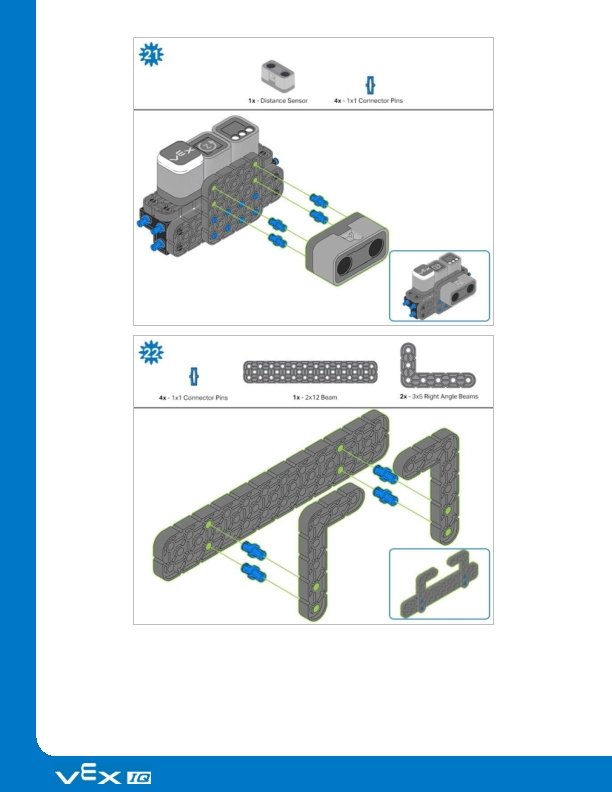 o This page walks students though configuring and tuning a Vision Sensor using the Vision Utility and VEXcode IQ Blocks. Suggested Time Allotment: 40 mins. Apply: The goal of this section is to introduce students to some of the uses of Vision Sensors and to the VEX IQ Robotics competition. Perception with Self-Driving Vehicles o This page explores how vision sensors can be used in self-driving cars. Suggested Time Allotment: 5 mins. Competition Connection: Crossover o This page introduces the students to VEX competitions, which give students a chance to complete using their original robotic build to solve a gaming challenge. Suggested Time Allotment: 10 mins. This page is optional. Rethink: The goal of this section is for students to explore different sensing blocks used with the Vision Sensor in VEXcode IQ Blocks. Prepare for the Vision Data Challenge o This page displays an explanation of the different sensing blocks that can be used with the Vision Sensor. Suggested Time Allotment: 20 mins. This page is optional. Practice for the Vision Data Challenge o This page walks students through how the reporter sensing blocks are calculating the values that they are reporting. Suggested Time Allotment: 20 mins. This page is optional. The Vision Data Challenge o This page gives the students the opportunity to calculate their own values for the sensing blocks using a given image from the Vision Utility. Suggested Time Allotment: 20 mins. This page is optional. Know: The goal of this section is for students to complete a summative assessment on the content presented in the STEM lab. Know Questions o Students will answer several multiple-choice assessment questions. Students receive immediate feedback as their answer choices are submitted. Suggested Time Allotment: 5 mins. Facilitation Notes Ensure all required parts for the build are available prior to starting this STEM Lab. Students will need to download an example project from VEXcode IQ Blocks and configure color signatures in the lighting conditions for the classroom area. There are directions for both of these actions provided in the STEM Lab.