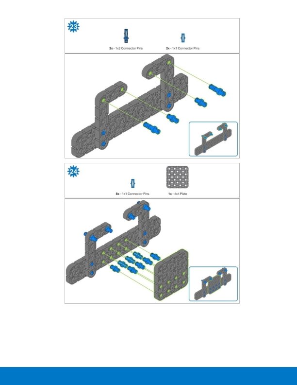 Steps 1 -6 will be repeated for steps 7– 12, so it’s possible to make both at once. Count all pieces before starting your build and have them readily available. When adding the 4 x Pitch Shaft, twist the pitch shaft to check for tension while turning. If it spins freely, it is not properly inserted into the motor.