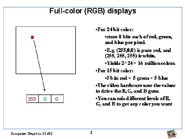 O que é cor? • Refere-se à radiancia ou irradiância medida em 3 comprimentos de onda diferentes. • Cor da cena: radiância vinda das superfícies (para iluminação). • Cor da imagem: irradiância, usado para renderização. • Quantidades com diferentes unidades, não devem ser confundidas.