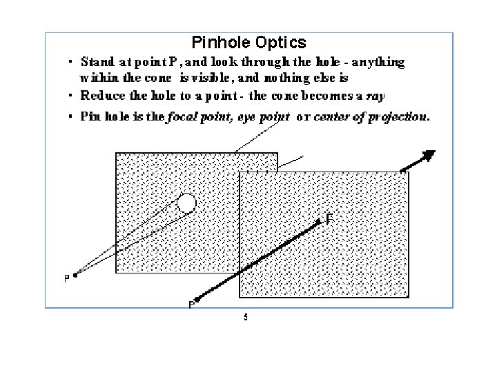 Focando uma imagem • Qualquer ponto numa cena pode refletir raios vindos de várias direções • Muitos raios vindos do mesmo ponto podem entrar na câmera. • Para termos imagens nítidas, todos os raios vindos de um mesmo ponto P da cena devem convergir para um ponto único p no plano de imagem.