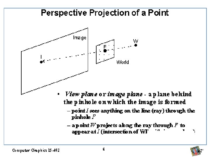 Projeção Perspectiva (homografia) • Projeta radialmente cada ponto na imagem • Linhas são projetadas apenas por seus pontos finais • Não queremos imagem invertida