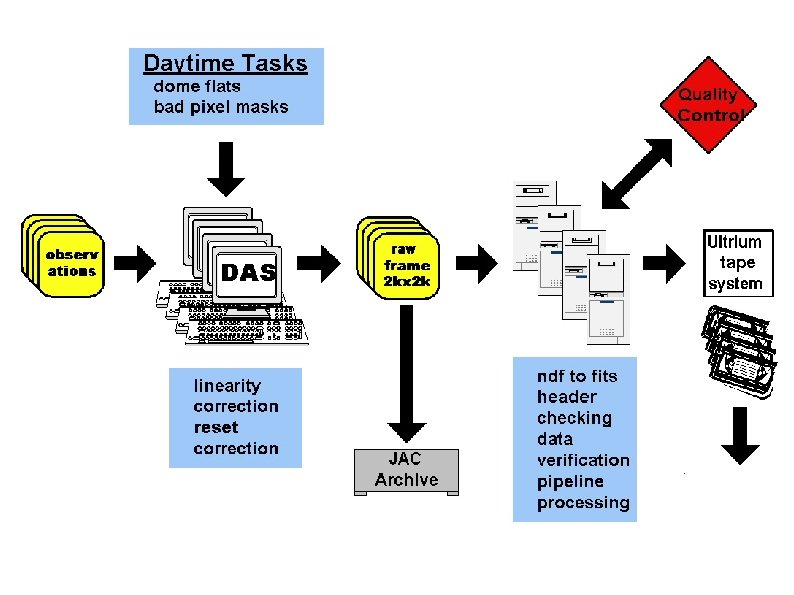 Progress work package spreadsheets and timelines instigated regular minuted meetings with actions provisional ICDs with JAC and WFAU agreed FITS header definition and test MEF data processed automated DQC monitoring developed pipeline monitoring tools with web interface programming completed for all basic modules ORAC-DR test routines for UFTI delivered and installed software module development for standard pipeline on target