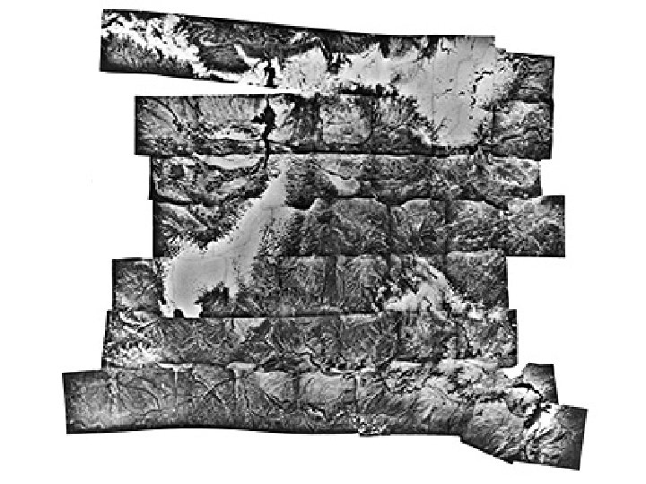 Aerial mosaics and image maps • A aerial images form the basis of useful map-like representation of the Earth’s surface such as mosaics and orthophotos • Aerial mosaics are produced by assembling adjacent aerial photographs to form a single image