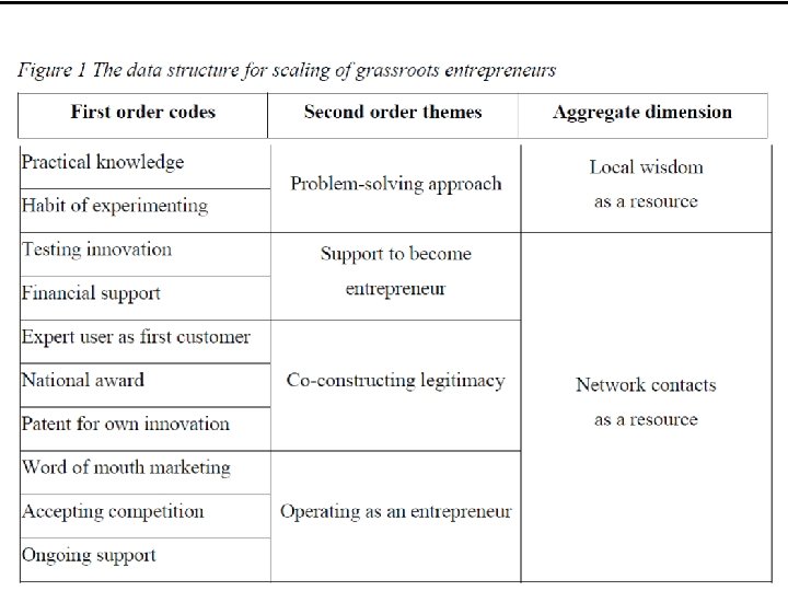 What’s wrong with this figure? Figure 6: Logics Recombinant Strategies, Practice Change, and Market Opportunities at Alessi Logics recombinant strategies Approaches to practice change Types of market opportunity Period 1 Period 2 Compartmentalized addition of beliefs of a new logic • Alessi adopted beliefs from the restricted cultural production logic to produce small sculptures for the table through industrial means…. Enriched maintenance of beliefs of the incumbent logic • Belief regarding product value was enriched by a belief from cultural production about aesthetic as a source of value. . . Mimicking practices of a different field • Alessi ignored manufacturing concerns for producing artworks and contracted renown sculptors and gave them full authority on the design of sculptures… Strengthening habitual practices with resources and practices from a different field • Alessi contracted architects, graphic and industrial designers to design kitchenware and add aesthetic value; designers expected to conform to economics and functionality constraints. . . Market entry attempt • New products targeted a new market for the organization (fine arts). • Failure to generate the expected returns both in terms of economic profits and recognition in the field of cultural production. Reinforced position in core markets • New products reinforced the competitive position in the traditional market and achieved considerable commercial success. • No effort to appeal to audience in cultural field. Periods 3 & 4 Hybridization of beliefs of multiple logics • Alessi created a new set of beliefs through holistic reinterpretation of the industrial manufacturing logic and the restricted cultural production logics… Creating a whole new system of practices and structures • Alessi created a new, idiosyncratic system of practices in product development and communication that included elements of practices of both industrial manufacturing and cultural production. Creation of integrated position across fields • New products created a new market for “signed kitchenware” at the intersection of commercial kitchenware and objects of art. • Recognition as a legitimate member of the cultural production field reinforced position in traditional markets.