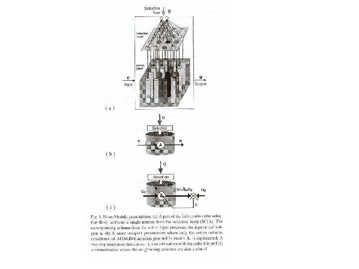 Modular neuro-systems • Neuromodule – Muestra una distinción en los datos • Parte de los datos sensoriales (el flujo de selección) se usa para seleccionar un estado discreto que corresponde con la activación de un conjunto de neuronas • Los datos input propiamente dichos
