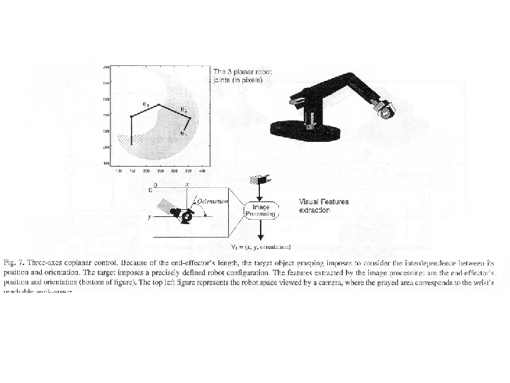 Visual servoing • Reaching and grasping – Dos módulos que controlan • la posición espacial de la garra • La orientación de la garra