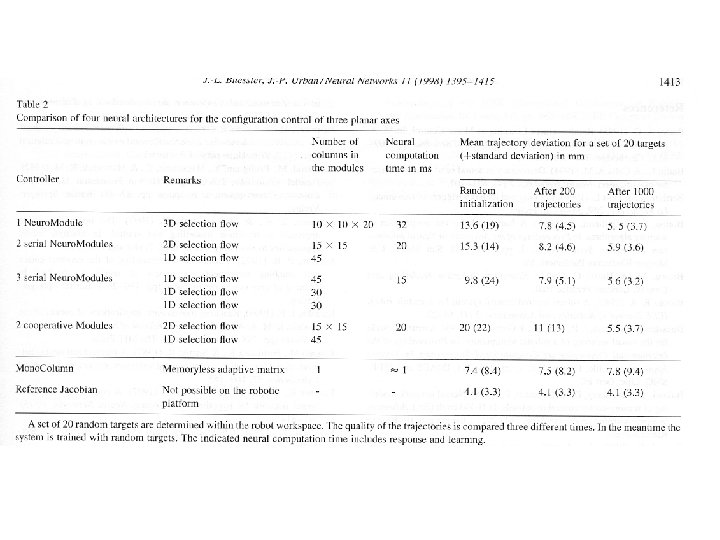 Visually guided movements: learning with modular neural maps in robotics Jean-Luc Buessler, Jean Philippe Urban Neural Networks 11(1998)1395 -1415