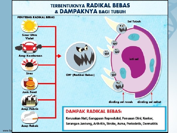 Fungsi Vitamin C membantu metabolisme kolesterol menjadi asam empedu, yang mungkin memiliki implikasi untuk tingkat kolesterol darah dan timbulnya batu empedu. Vitamin C juga merupakan antioksidan yang sangat efektif untuk melawan radikal bebas. Bahkan dalam jumlah kecil, vitamin C dapat melindungi molekul penting, seperti protein, lipid (lemak), karbohidrat, dan asam nukleat (DNA dan RNA) dari kerusakan yang diakibatkan radikal bebas, racun, ataupun polusi. Sumber : Gangguan Kesehatan Akibat Kelebihan Vitamin C http: //bidanku. com/gangguan-kesehatan-akibat-kelebihan-vitaminc#ixzz 2 u 9 f. AL 2 LL Next
