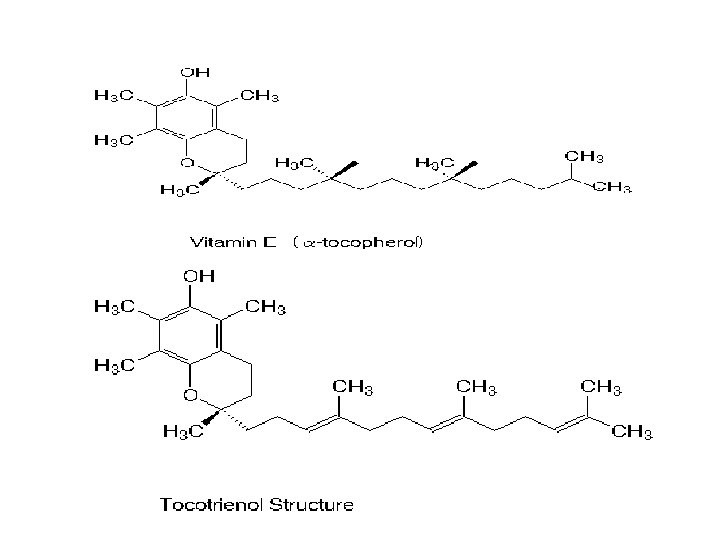 • Comparison of Tocotrienol and Tocopherol • Tocotrienol are forms of natural vitamin E that can protect against brain cell damage, prevent cancer and reduce cholesterol. • These biological characteristics, however, are not present in tocopherol due to their chemical structure. • The unsaturated side-chain in tocotrienol causes them to penetrate tissues with saturated fatty layers more efficiently making them ideal for anti-aging oral supplements and the skin care range. • Tocotrienol are better able than tocopherol at combating oxidative stress of skin that had been exposed to UV rays of the sunlight.