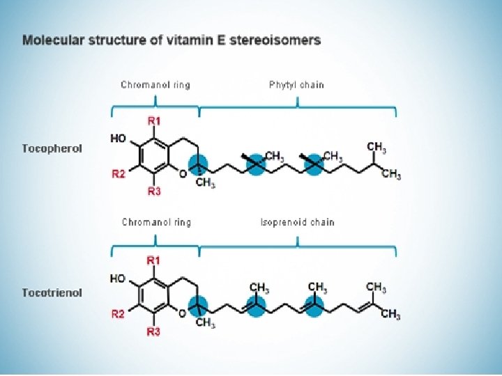 • • • Functions of vitamin E Vitamin E is integral part of cellular membranes whose main role is to defend the cell against oxidation. 1 -Antioxidant. 2 -Regulates oxidation reactions. 3 -Cell-membrane stability. 4 -Protect polyunsaturated fatty acids. The primary role of vitamin E within the body is to function as an antioxidant. Vitamin E is considered to be the major chain breaking antioxidant in membranes.