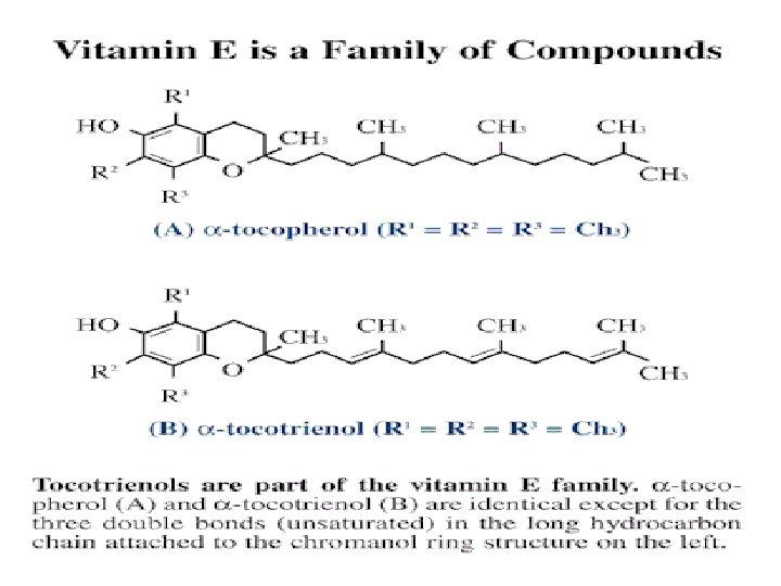 • The existence of a lack of vitamin E is rare. • If this occurs, it is manifested in specific cases, that is, in the following three situations: • 1 -Persons with a difficulty of absorbing or secreting bile or who suffer from fat metabolism-related disease (celiac disease or cystic fibrosis) • 2 -Premature infants (with Very low birth weight, VLB) who weigh <1, 500 grams at birth • 3 -Persons with genetic abnormalities in alphatocopherol transporter proteins.