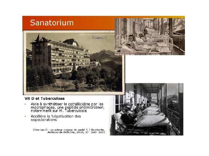 MODES D’ADMINISTRATION • La vitamine D a une demi-vie de 3 à 6 semaines, alors que celle de la 1. 25‐OH D (forme active) est de seulement 4‐ 6 heures. • L’administration peut donc se faire de plusieurs façons avec un résultat sanguin équivalent: o 1 x/jour (ex: 400 UI/jour) o 1 x/semaine (ex: 2’ 800 UI/semaine) o 1 x/mois (ex: 12’ 000 UI/mois) • Prendre le soleil ! (mais excès = cancer) Chez un individu à la peau claire (phototype II–III), une exposition de 10 à 15 minutes du corps entier en été produit entre 10’ 000 et 25’ 000 UI de vitamine D 3. Actuellement, on admet comme suffisante une exposition des bras et des jambes aux UVB, durant 5 à 30 minutes entre 10 h et 15 h, deux fois par semaine