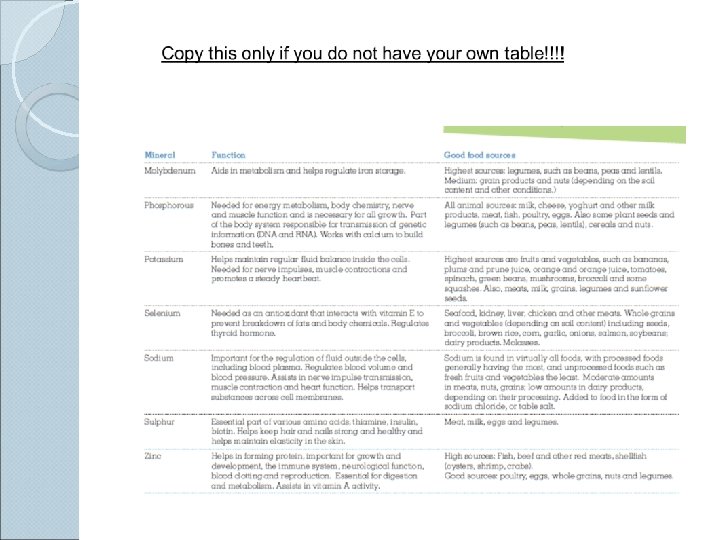Calcium The most abundant mineral in your body ◦ 99% is stored in the bones Known How for bone health much do you need? ◦ Males 19 -50 years old: 1, 000 mg / day ◦ Females 19 -50 years old: 1, 000 mg / day