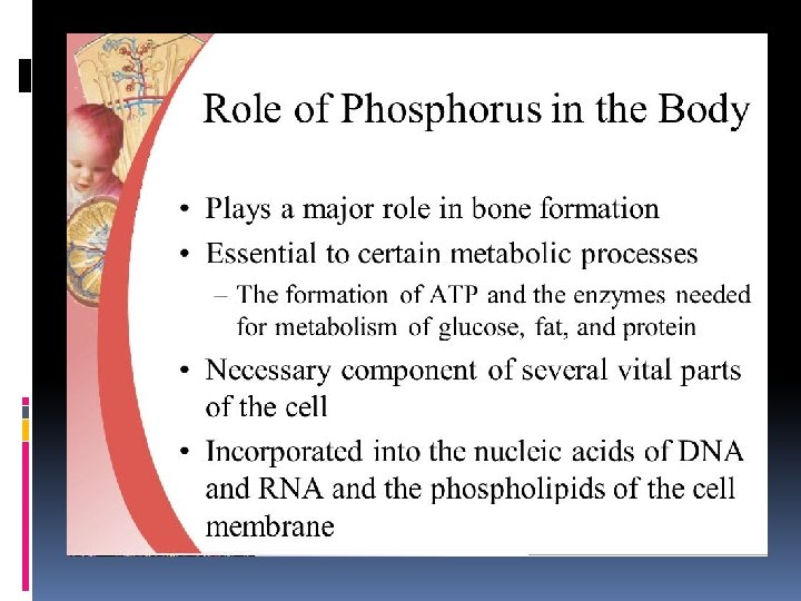 Minerals Help Maintain Fluid Balance Minerals play a key role in fluid balance in the cells Extracellular minerals – sodium and chloride Intracellular mineral – potassium with the help of calcium, magnesium, and sulfur