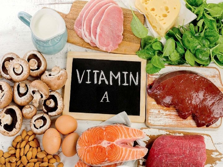 v Vitamin A stabilní během tepelné úpravy v Karotenoidy po tepelné úpravě vstřebatelnější v Zásoby vitaminu A v játrech na 6 -12 měsíců v Funkce: o o o Vliv na genovou expresi Vidění Růst a vývoj (kostí) Imunita Reprodukce