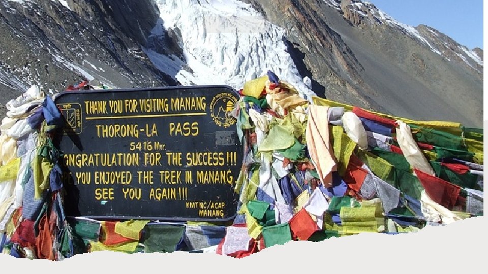 Aklimatizace • Aklimatizace je přivyknutí si změněným přírodním podmínkám. • S rostoucí nadmořskou výškou klesá tlak vzduchu. • Proti stavu při mořské hladině klesne tlak vzduchu ve výšce 3500 m na zhruba 2/3, v 5 500 m na 1/2 a kolem 8 300 m na 1/3. • Proto je důležité, aby lidé, kteří žijí v nižších polohách při výstupu do vyšších nadmořských výšek prodělali tzv. aklimatizaci a jejich organismus se této výšce přizpůsobil.