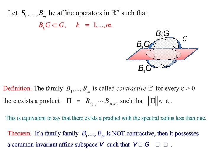 This result was significantly strengthened by V. Oseledec (multiplicative ergodic theorem, 1968) The problem of computing the Lyapunov exponent is algorithmically undecidable (Blondel, Tsitsiclis, 2000)