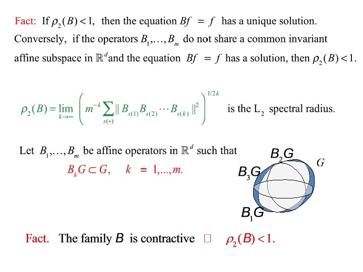 Special cases: Fractal curves: Cantor, Koch, De Rham (1950), Barnsley (1988) Wavelets: Daubechies, Lagarias, Cohen, Strang, Heil, …. (1988 -- 1994) Approximation algorithms: Dubuc, Micchelli, Dyn, …. (1986 -1998) Probability: Derfel (1989), Dyn, Levin (1996) Self-similar measures: Solomyak, Verbitsky (1995), Sheipak (2006)