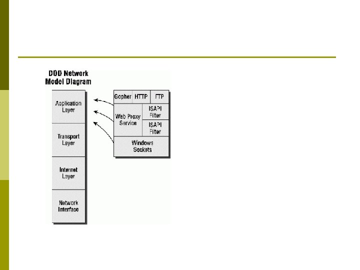 p p p Proxy bekerja pada layer aplikasi, proxy server dapat berjalan pada banyak aplikasi antara lain: HTTP Proxy atau Web Proxy untuk protokol HTTP atau Web, FTP Proxy, SMTP Proxy/POP Proxy untuk email NNTP proxy untuk Newsgroup, Real. Audio/Real. Video Proxy untuk multimedia streaming, IRC proxy untuk Internet Relay Chat (IRC), Masing-masing hanya akan menerima, meneruskan atau melakukan filter atas paket yang dihasilkan oleh layanan yang bersesuaian.