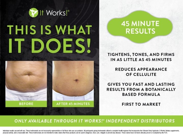 Ultimate Body Applicator Normalpris: ca 900: - Pris Lojal Kund: ca 540: - v Uppnå fantastiska resultat med It Works! unika Body Applicator! The Ultimate Body Applicator är en non-woven wrap som innehåller en botaniskt baserad kräm, som tillför huden maximalt med fukt och näring, samtidigt som den rensar, stramar upp, glattar ut och tonar huden, var du än har behov för det. v Minimerar synligheten av celluliter, sträckmärken, pigmenförändringar och ärr v Förbättrar hudens struktur och smidighed v Lätt använda, grisar inte ner v Många ser resultat efter bara 45 minuter v Progressiva resultat under 72 timmar v Baserad på helt naturliga ingredienser Innehåller 4 st. Applicators.