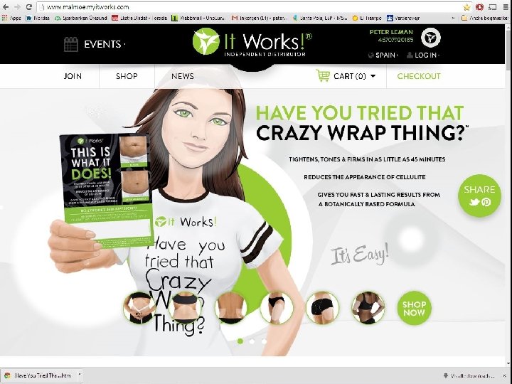 Success Plan: Keep It Simple - 3 STEG TILL SUCCÉ Steg 1: ANMÄL DIG SOM DISTRIBUTÖR! • • • Köp ditt startpaket Sätt upp en månads autoship på min. 80 BV Boosta ditt startpaket med bra erbjudande från It Works! Steg 2: GRATIS WRAP! HITTA 4 LOJALA KUNDER INOM DINA FÖRSTA 30 DAGAR och du får 820 kr. som distributör, som du kan använda till att köpa produkter för • Lojal kund 1: _______________ • Lojal kund 2: _______________ • Lojal kund 3: _______________ • Lojal kund 4: _______________ Steg 3: GARANTERAD MÅNADSINKOMST TECKNA PERSONLIGEN 3 DISTRIBUTÖRER UNDER DIG Och hjälp dom att genomföra steg 2, inom dina 2 första månader • Team member 1: _____________ • Team member 2: _____________ • Team member 3: _____________ 3. 450 : - SEK Minimum i månaden