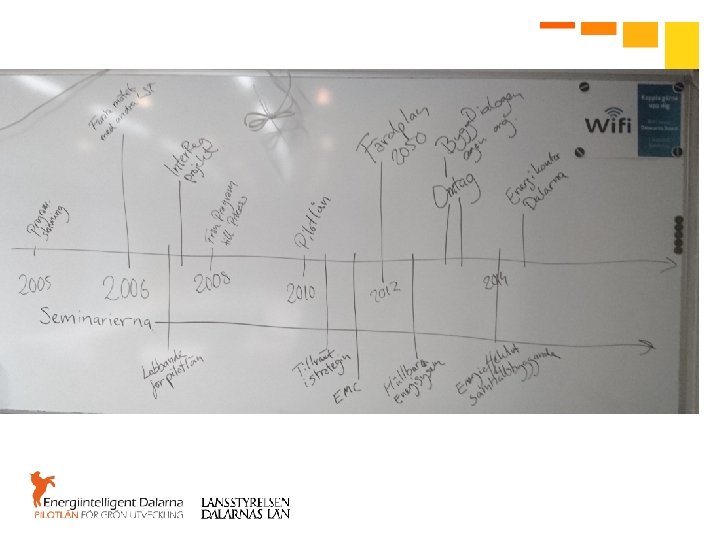 Viktiga milstolpar enligt Styrgruppen • • • Framtagandet av energi- och klimatstrategierna 2008 och 2012. När vi började utse Dalapiloter 2010. Ny struktur 2013 och PM om samverkan Det årliga seminariet är en viktig del De årliga verksamhetsberättelserna och verksamhetsplanerna