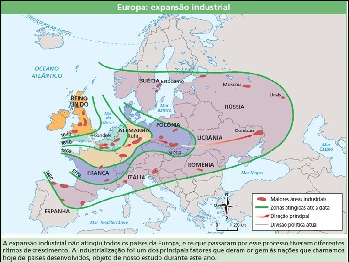 O nosso enfoque agora é no mundo desenvolvidos, ou seja, naqueles países que acompanharam todas etapas das revoluções industriais, sem atraso. • Ocorreu entre o século XVIII até 1870, no Reino Unido. • As técnicas industriais ainda eram simples. Predominava a máquina a vapor e as indústrias têxteis. • principal fonte de energia era o carvão mineral. • as empresas e médias, quase não havia monopólio. Era o próprio capitalismo concorrencial. Carvão mineral, principal fonte de energia Indústria têxtil