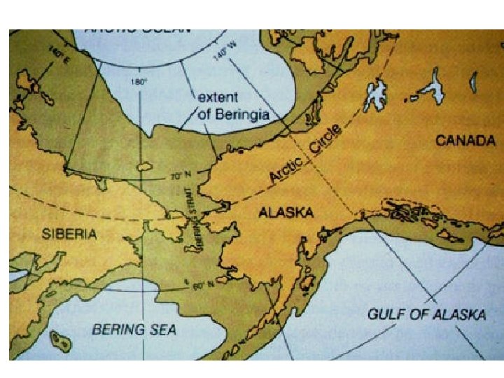 • Migration Path • A large area of land called Beringia was uncovered due to freezing of the oceans water and the forming of large glacier. This formed a “land bridge” between the two continents. Animals were able to migrate between Asia and North America. Archeologists think that hunters followed herds of animals across the land bridge into the Americas.