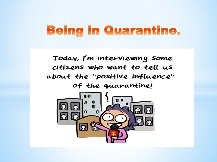 The advantages of being in quarantine • Cities will calm down. • The economy will take a break and, in some areas polluted air will have a chance to become clean again. • The government and businesses will finally take big steps towards home offices and telework. • Teachers and students will adapt to new ways of learning. • Many people will save money. • We will have time for our loved ones. • Spending quality time with other 'safe' friends on SKYPE or other video calls and video conference calls. • Watching TV with family members. • A chance to appreciate our home… home-cooking & other